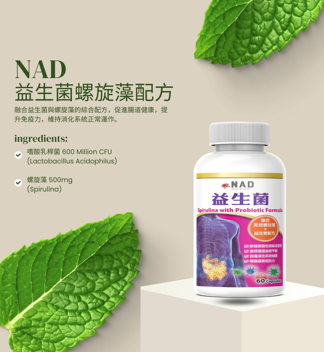 融合益生菌與螺旋藻的綜合配方,促進腸道健康,提升免疫力,維持消化系統正常運作。
